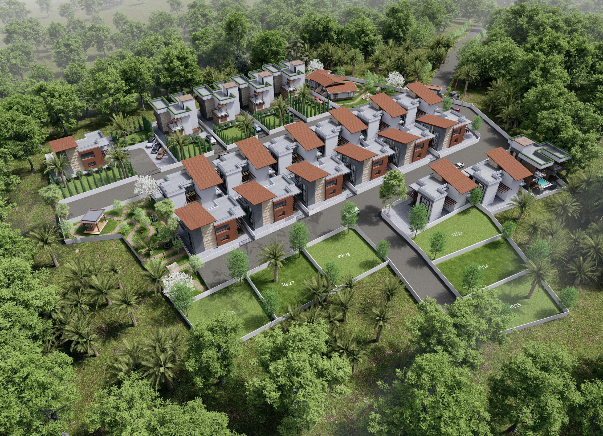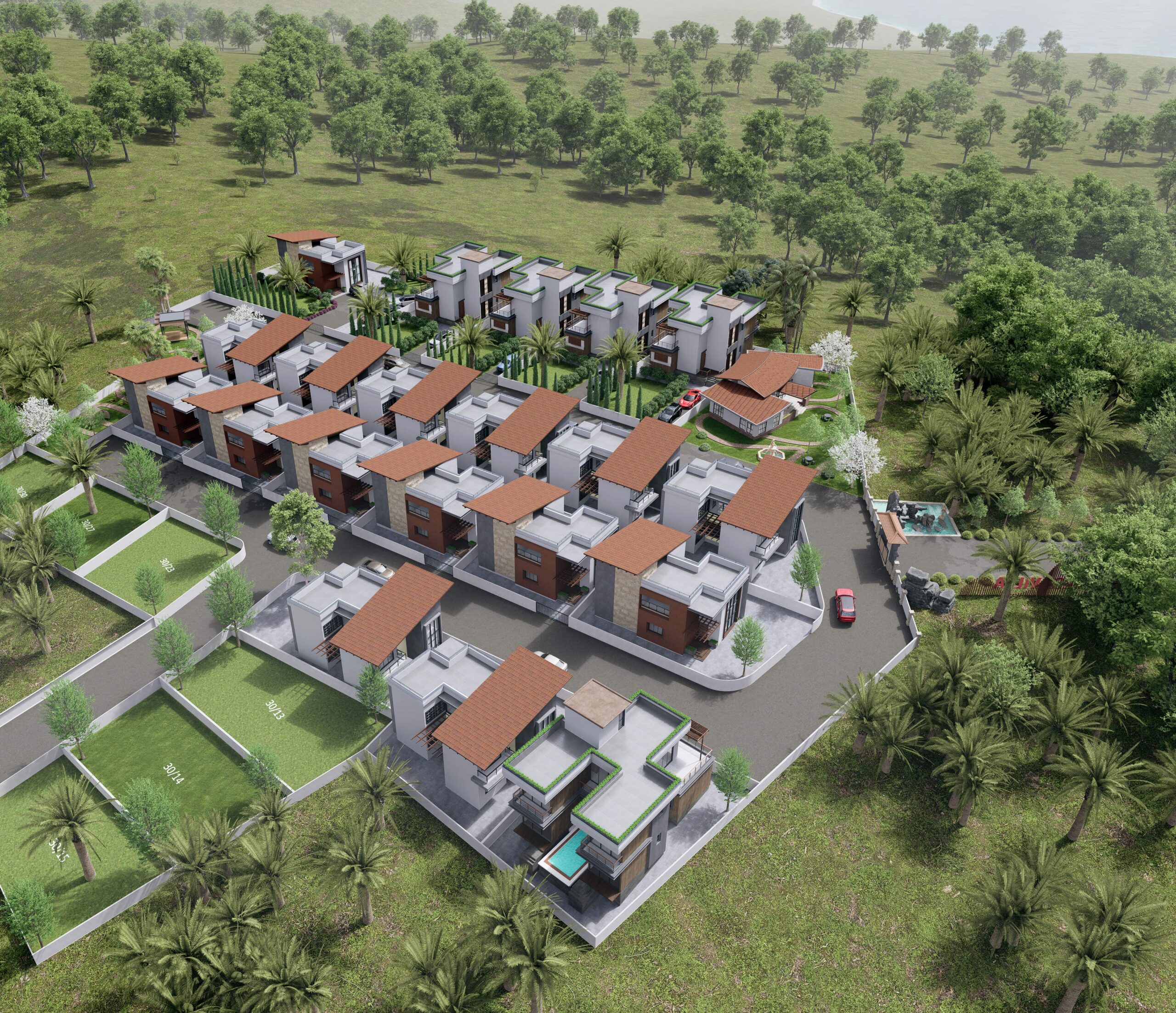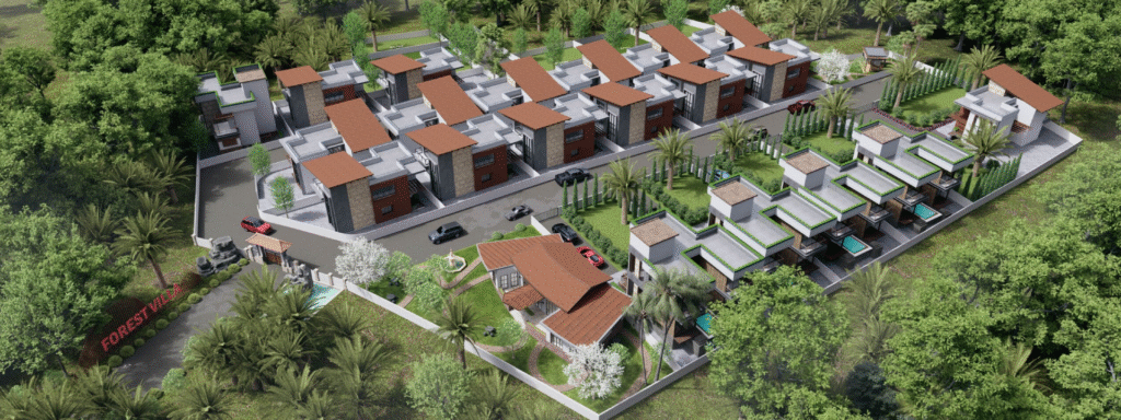 Forest Villa Resort in Adkhal is a master-planned 3-acre luxury coastal retreat that seamlessly blends natural beauty with architectural elegance. Inspired by Balinese design principles, the community celebrates the harmony of tropical living, bringing together lush greenery, panoramic sea views, and earthy architecture.