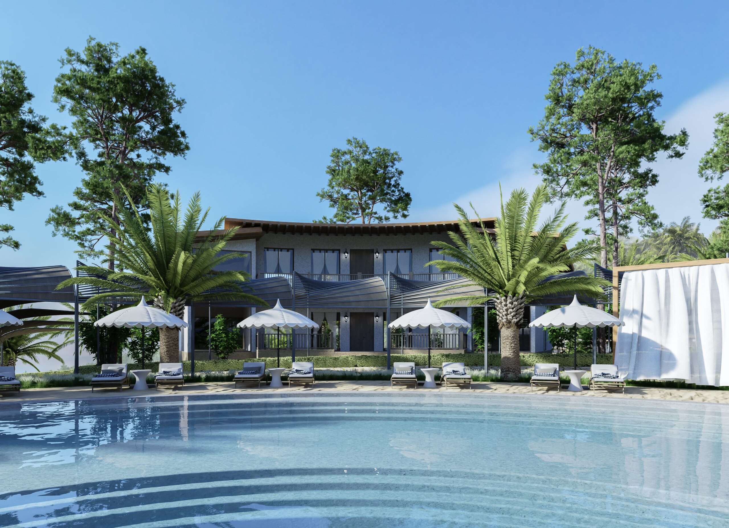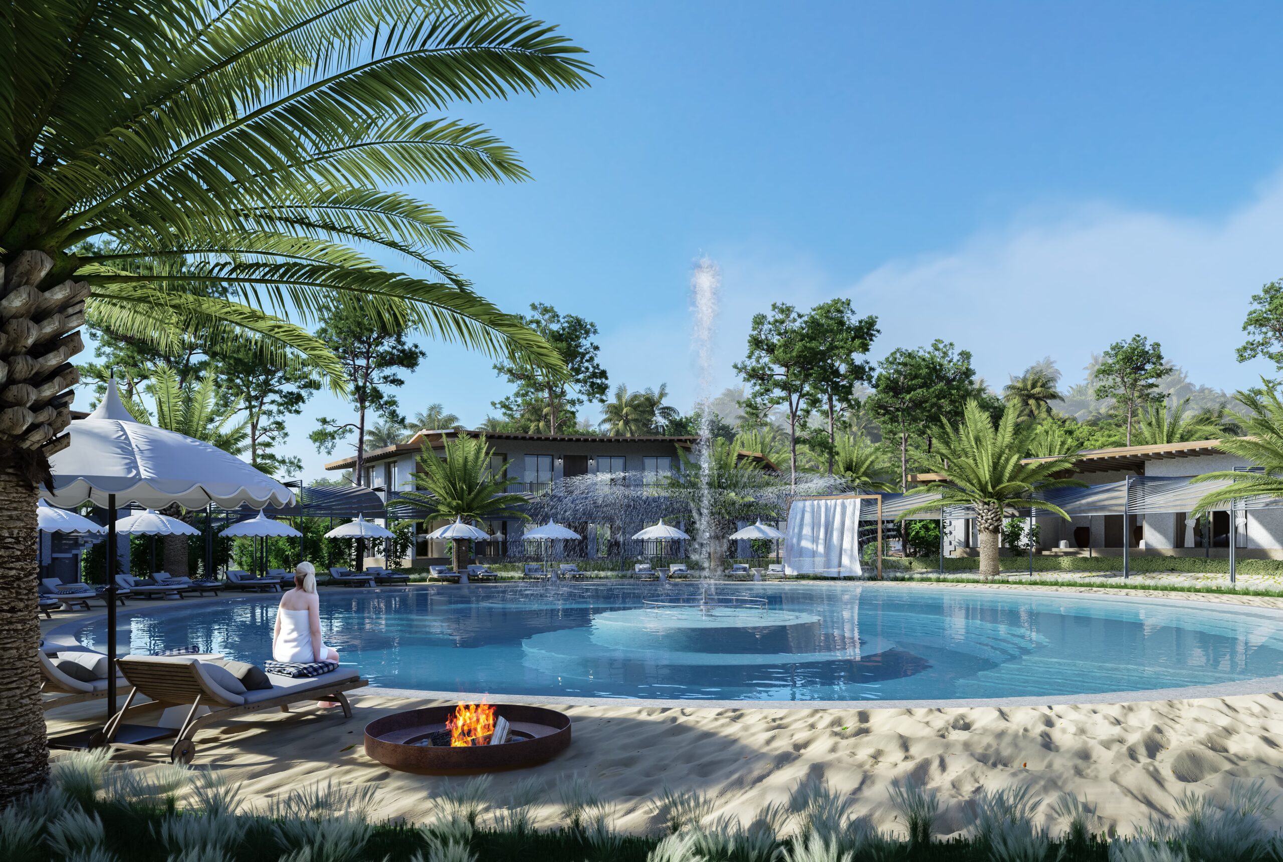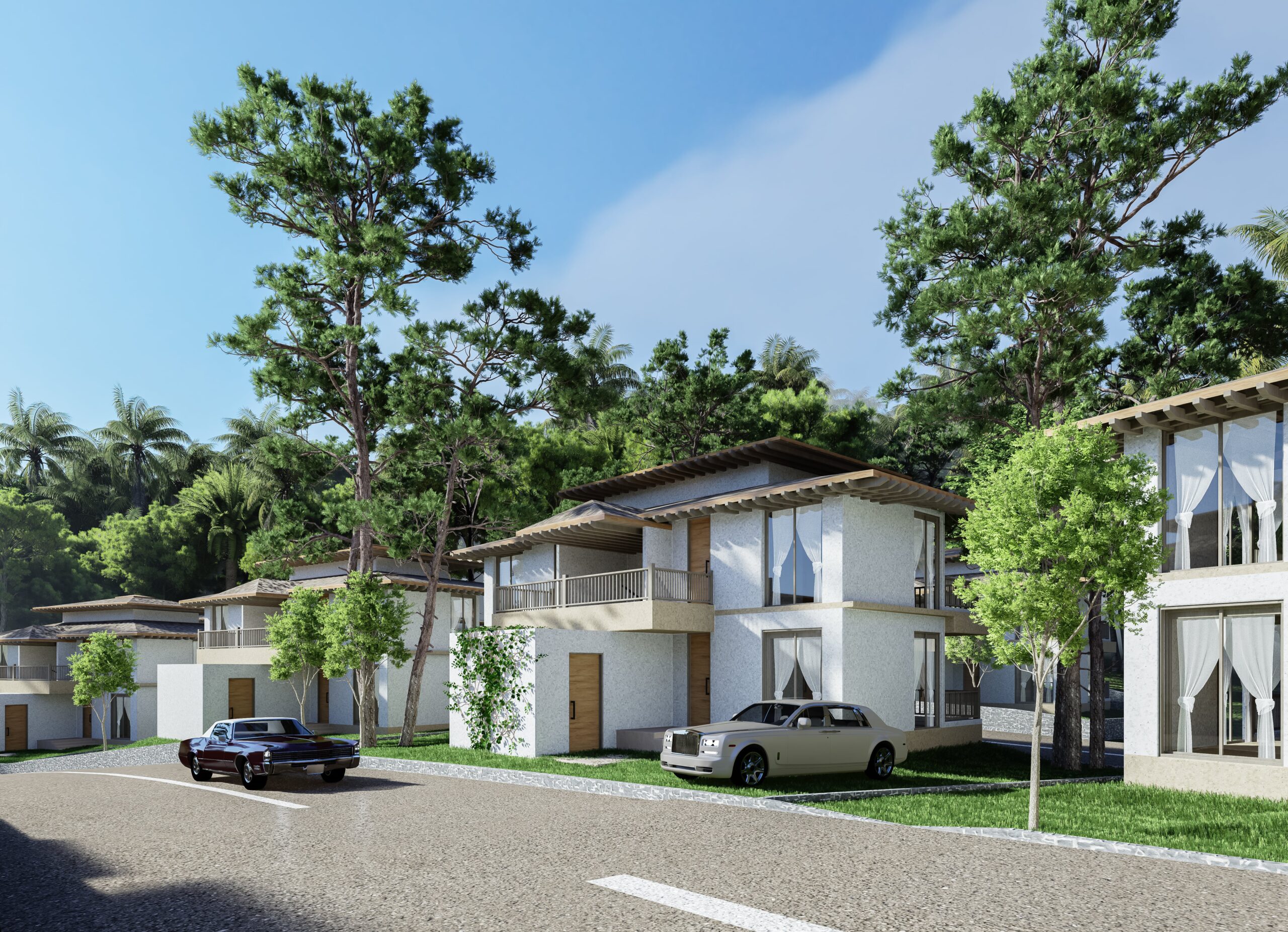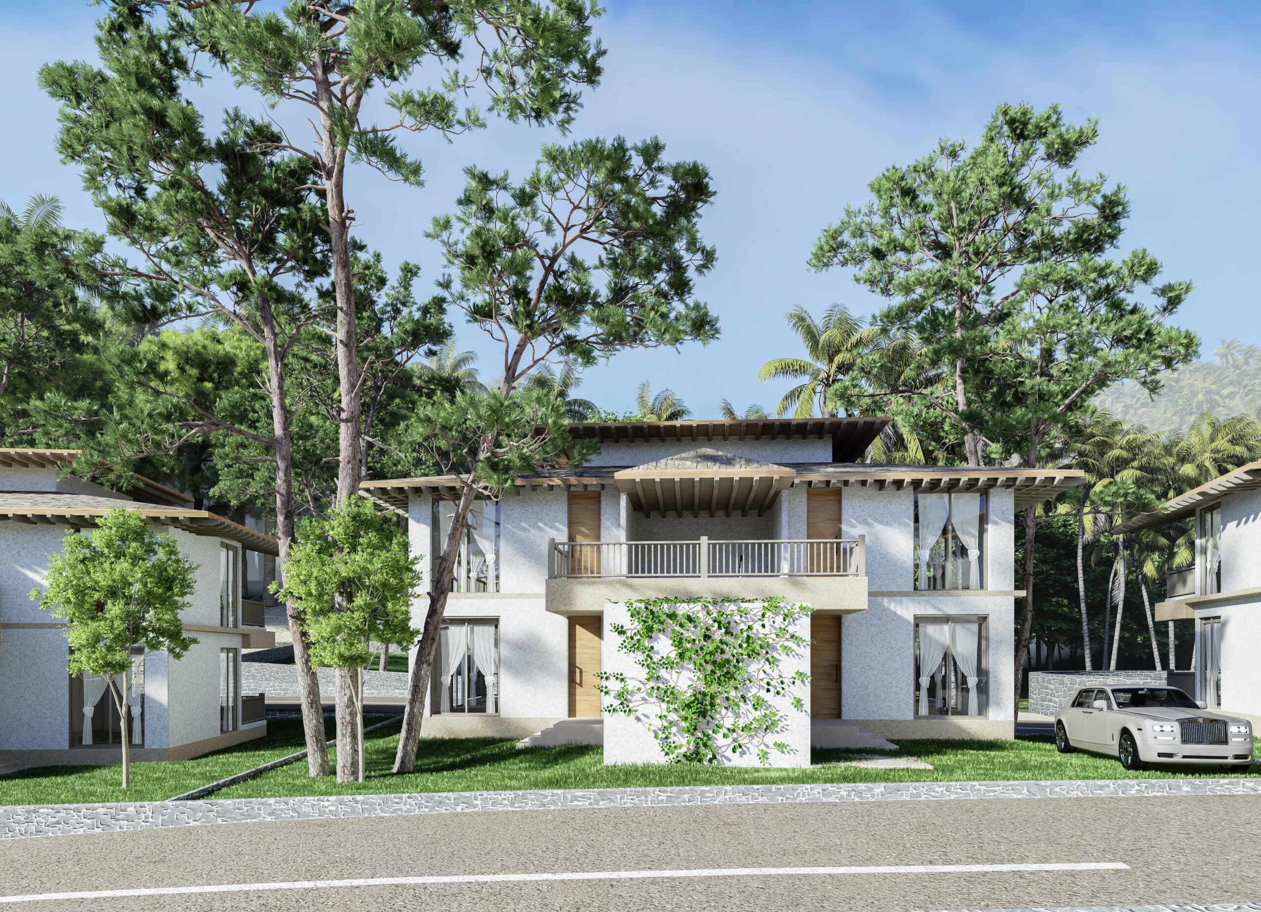 Kokan Vaibhav Resort is a 16-acre master-planned retreat drawing from the timeless elegance of Balinese architecture while responding sensitively to the lush valleys of Mandangad. The layout is organically zoned with clusters of G+1 villas built on 2000 sq.ft. NA plots, arranged to maximize privacy, cross-ventilation, and valley views. The villas feature pitched roofs with extended eaves, reflecting tropical resilience and echoing the sloping contours of the landscape. Natural materials like locally sourced laterite stone, exposed timber beams, and terracotta tiles establish a strong regional character, while large overhangs, open-to-sky courtyards, and wraparound verandahs ensure thermal comfort and seamless indoor-outdoor transition. At the heart of the resort lies a grand circular pool and water plaza, inspired by Balinese temple ponds and the Kokan coast’s fluidity, creating a serene axis that anchors communal and leisure spaces. The spatial language throughout the resort prioritizes low-density, breathable planning, verdant buffers, and meandering pathways — forming a harmonious blend of architecture, nature, and cultural symbolism.